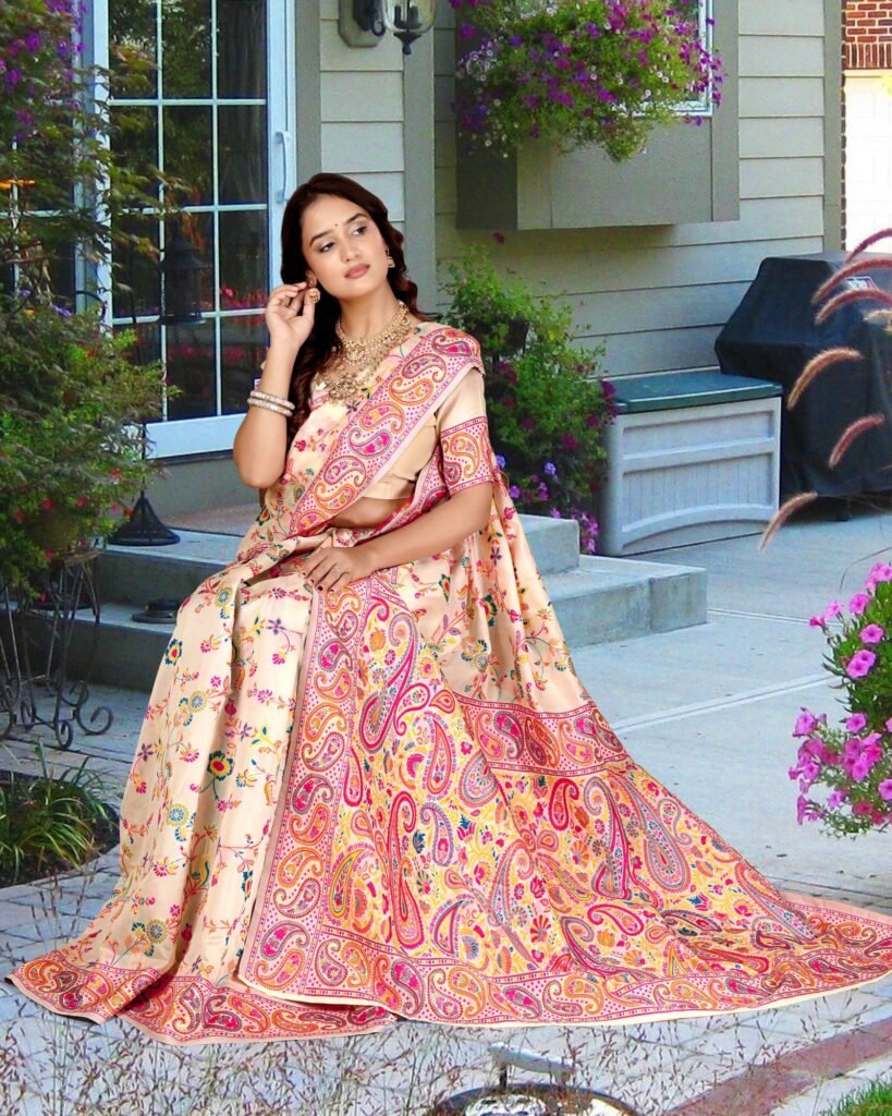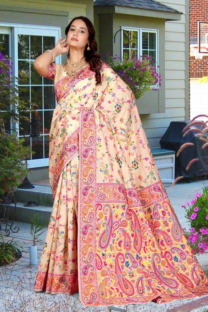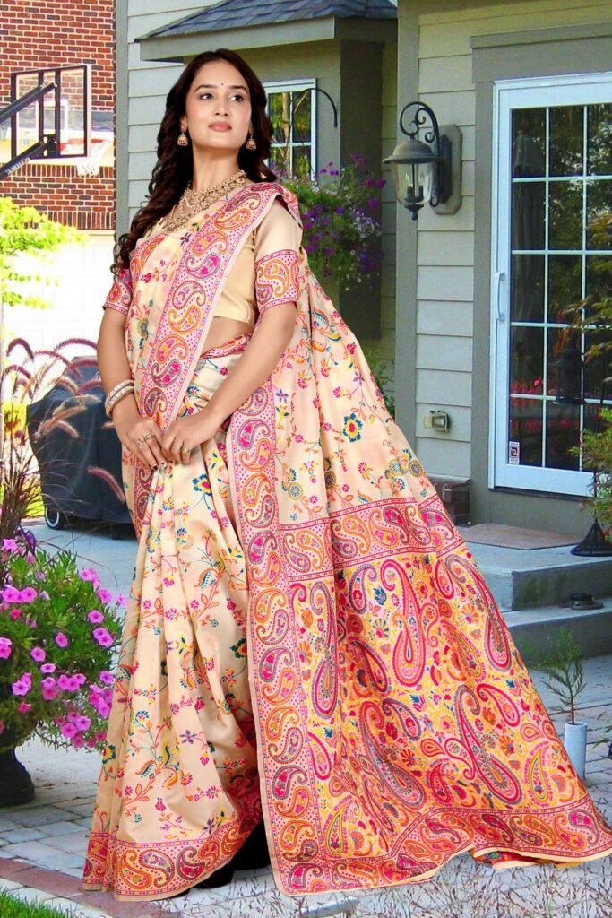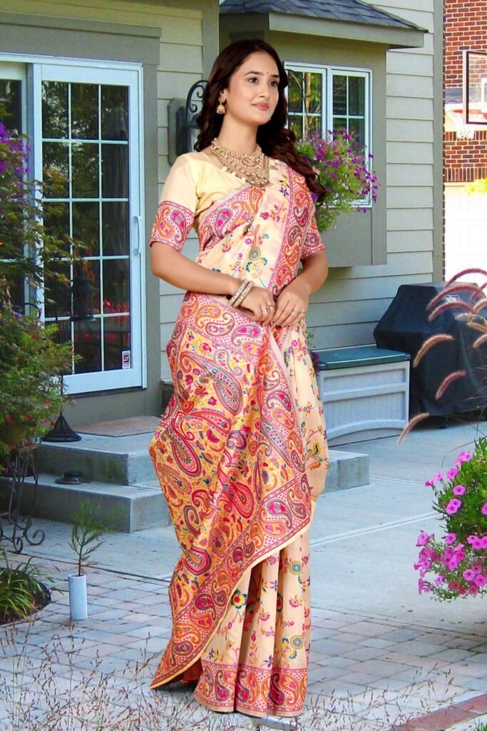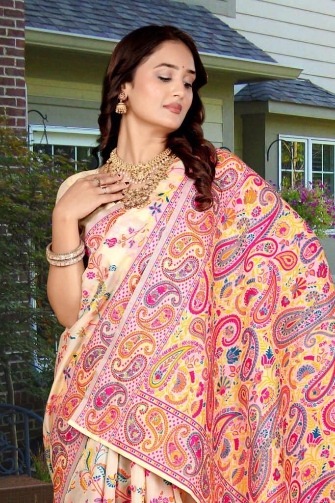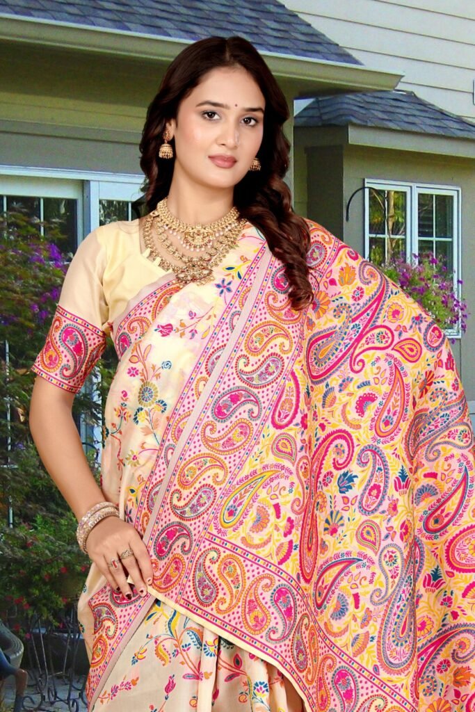 The Epitome of Elegance: Cream Pashmina Silk Saree