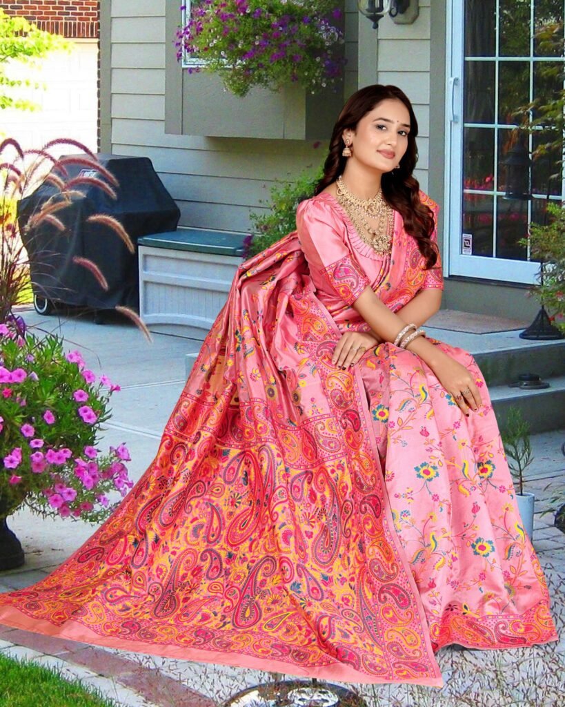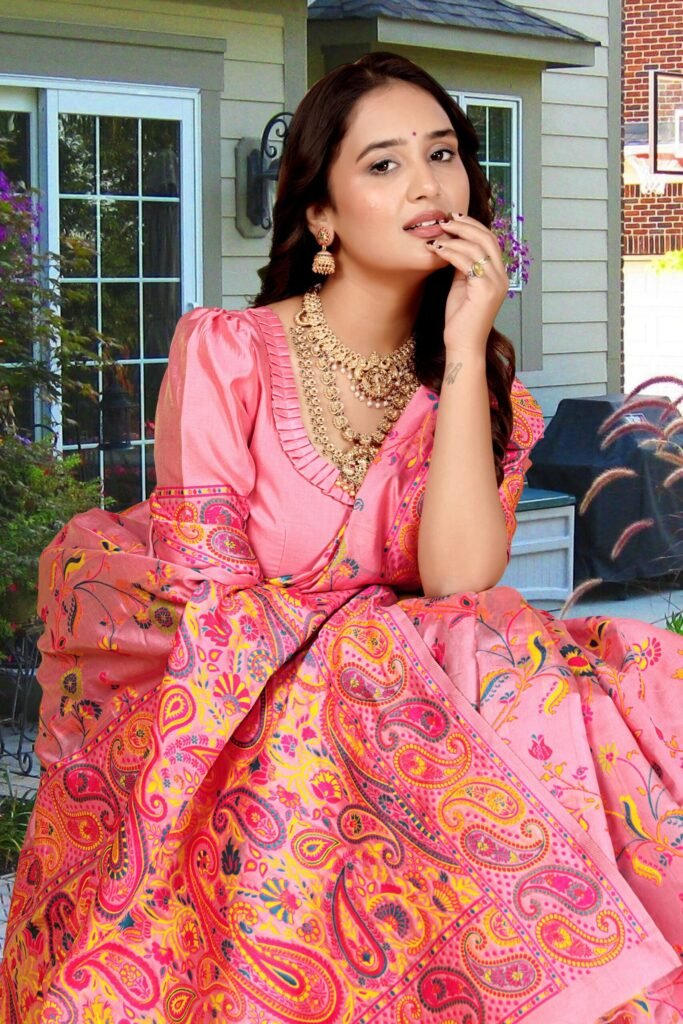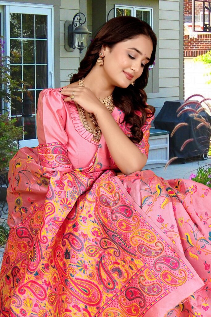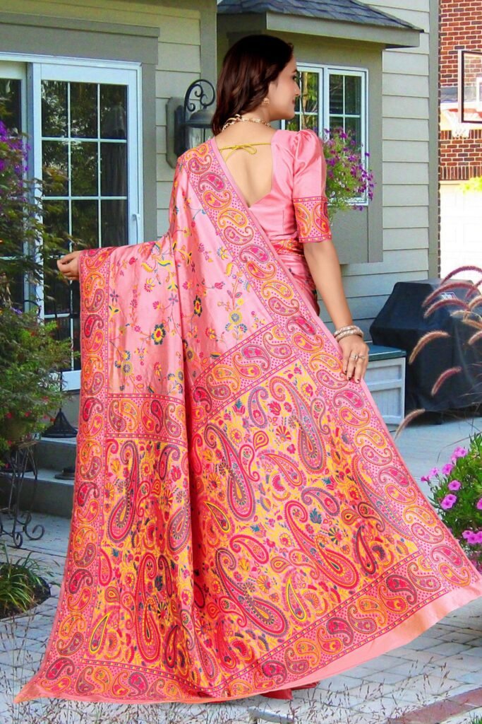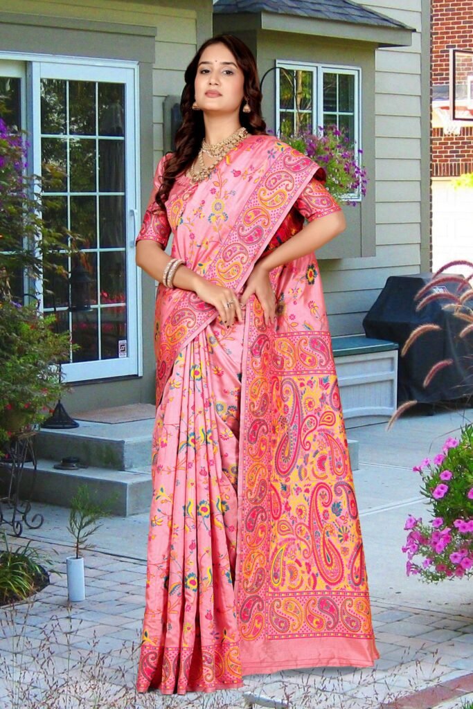 Pink Semi Pashmina Silk Saree with Multicolor Thread Weaving Work